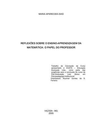 Este documento resume um trabalho de conclusão de curso sobre reflexões acerca do ensino-aprendizagem da matemática e o papel do professor. O autor defende que o professor desempenha um papel fundamental nesse processo, devendo estabelecer um diálogo produtivo com os alunos e tornar a escola um espaço adequado para a construção de conhecimentos. Além disso, ressalta a importância de capacitar os professores por meio de metodologias e cursos de atualização.