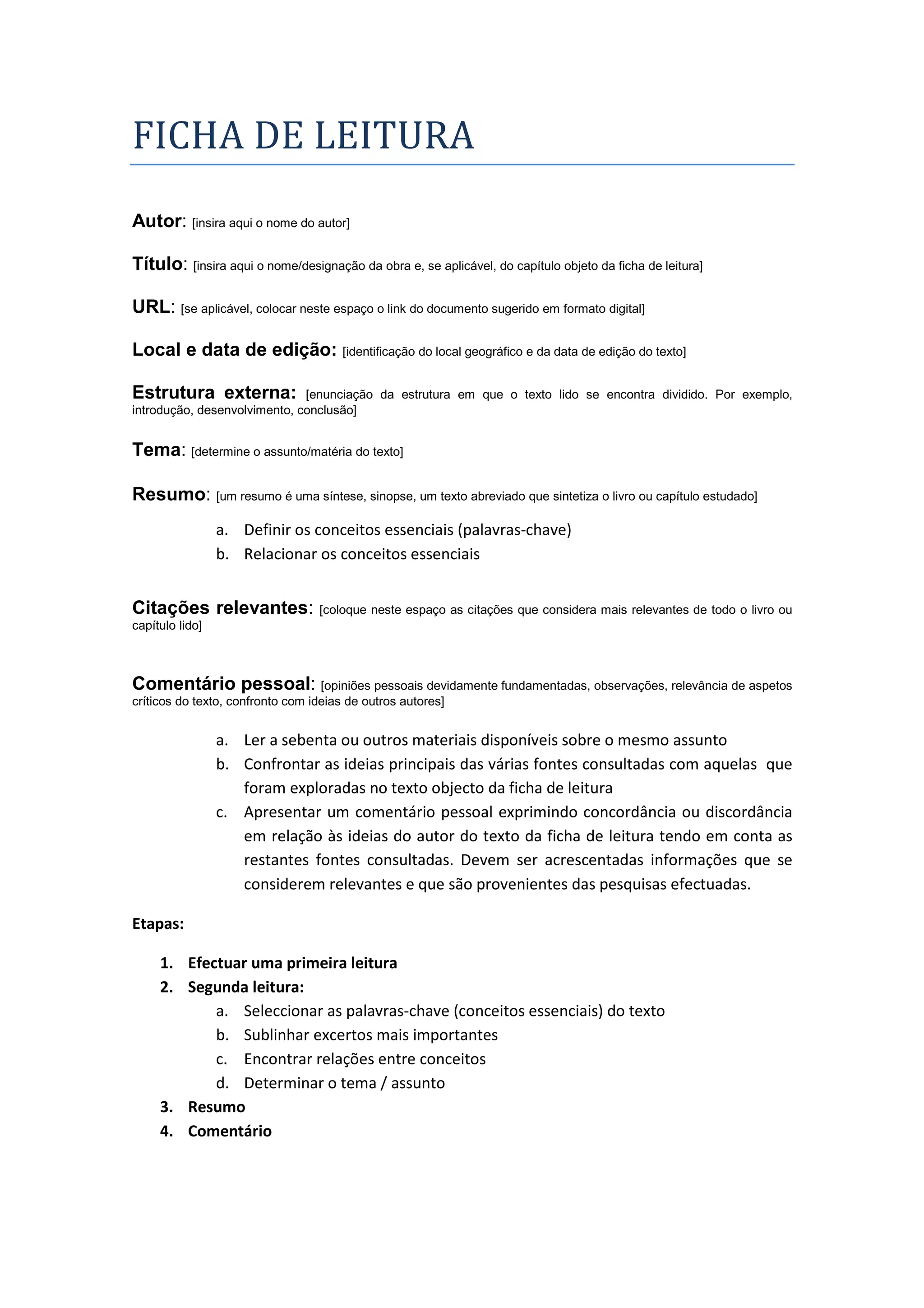 Título: [insira aqui o nome/designação da obra e, se aplicável, do capítulo objeto da ficha de leitura]