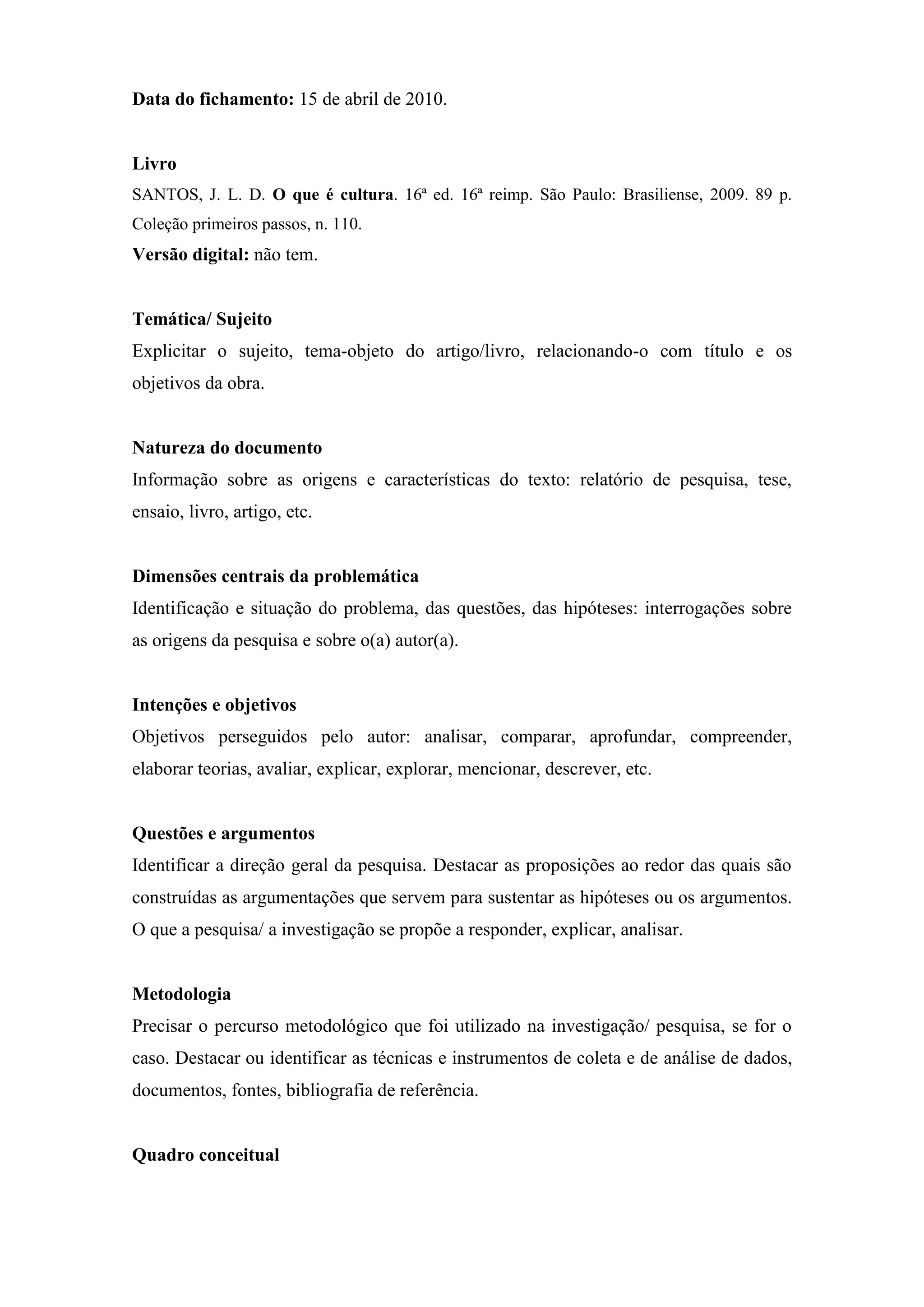 Este documento fornece um resumo detalhado do livro "O que é cultura" de J. L. D. Santos em 3 frases: