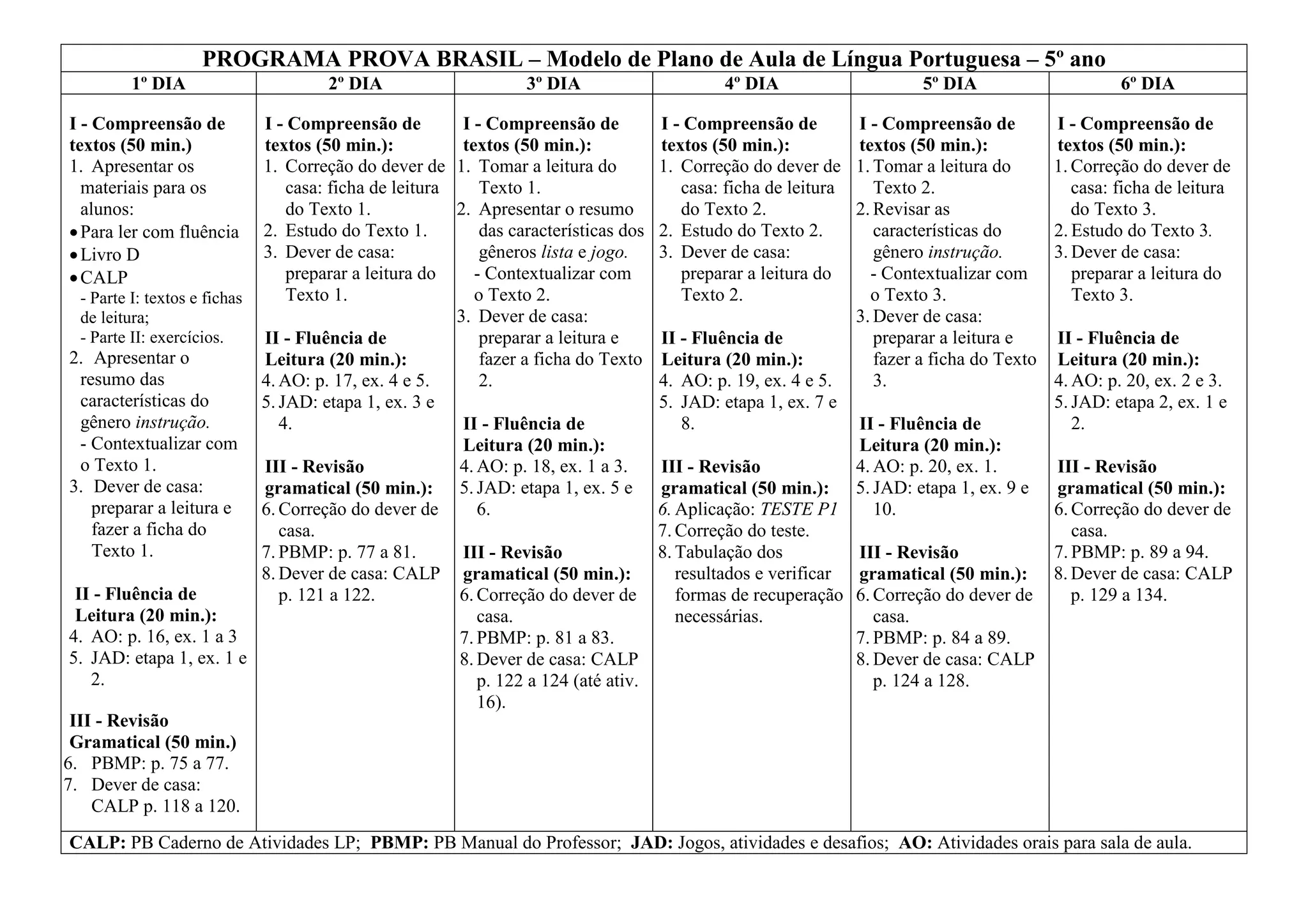 PROGRAMA PROVA BRASIL– Modelo de Plano de Aula de Língua Portuguesa – 5º ano