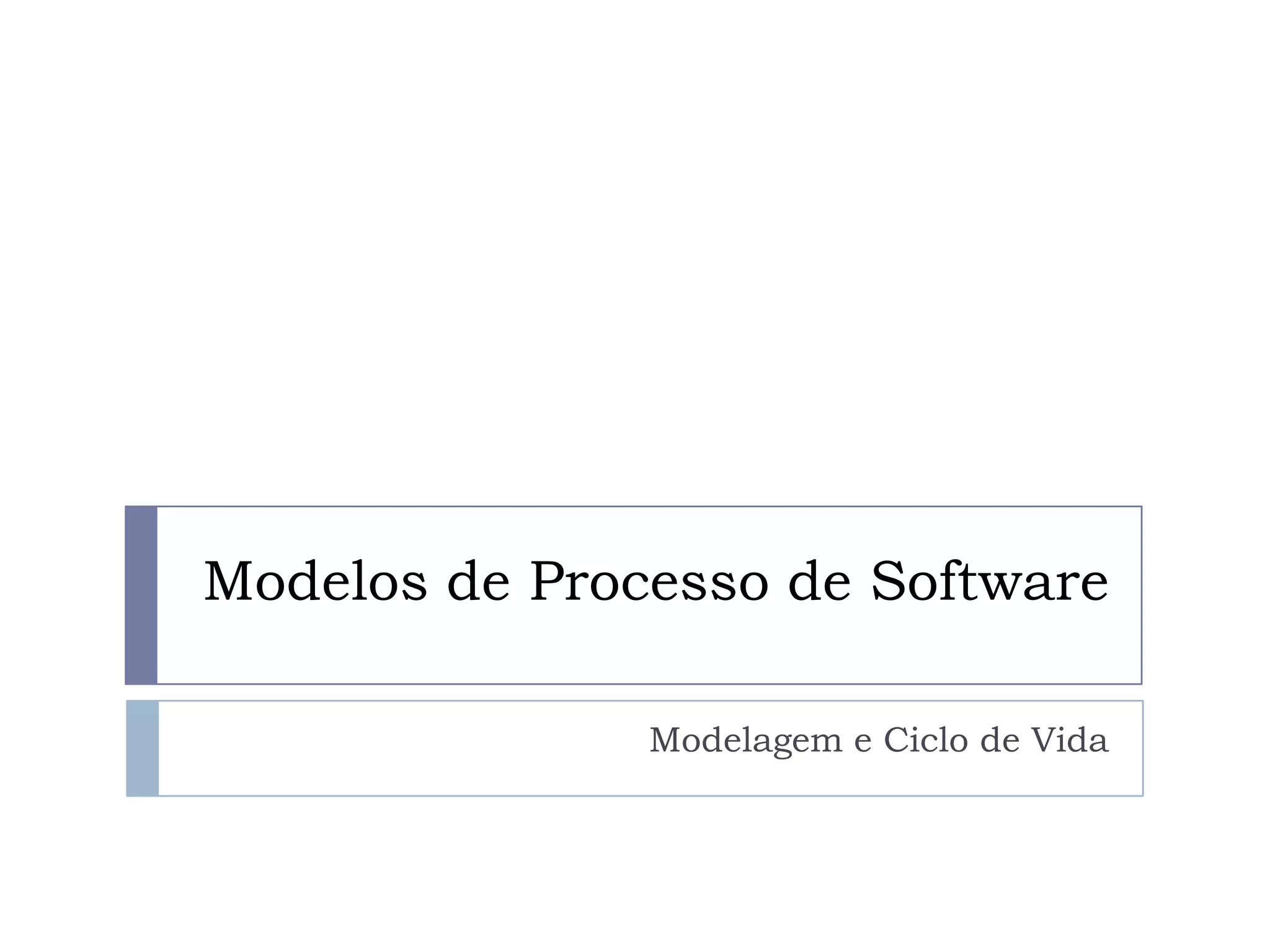 O documento introduz vários modelos de processo de software, incluindo o modelo cascata tradicional, desenvolvimento evolucionário, desenvolvimento iterativo incremental e o modelo em espiral. Estes modelos variam na flexibilidade para lidar com requisitos mutáveis e no grau de visibilidade do processo.