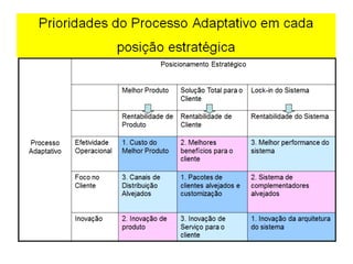 O documento discute o Modelo Delta, uma estratégia para se conectar melhor com os clientes. O Modelo Delta envolve segmentar os clientes, definir uma missão alinhada, criar uma agenda estratégica e métricas de desempenho. A estratégia visa entender profundamente os clientes e criar soluções únicas para cada grupo, em vez de focar nos competidores.