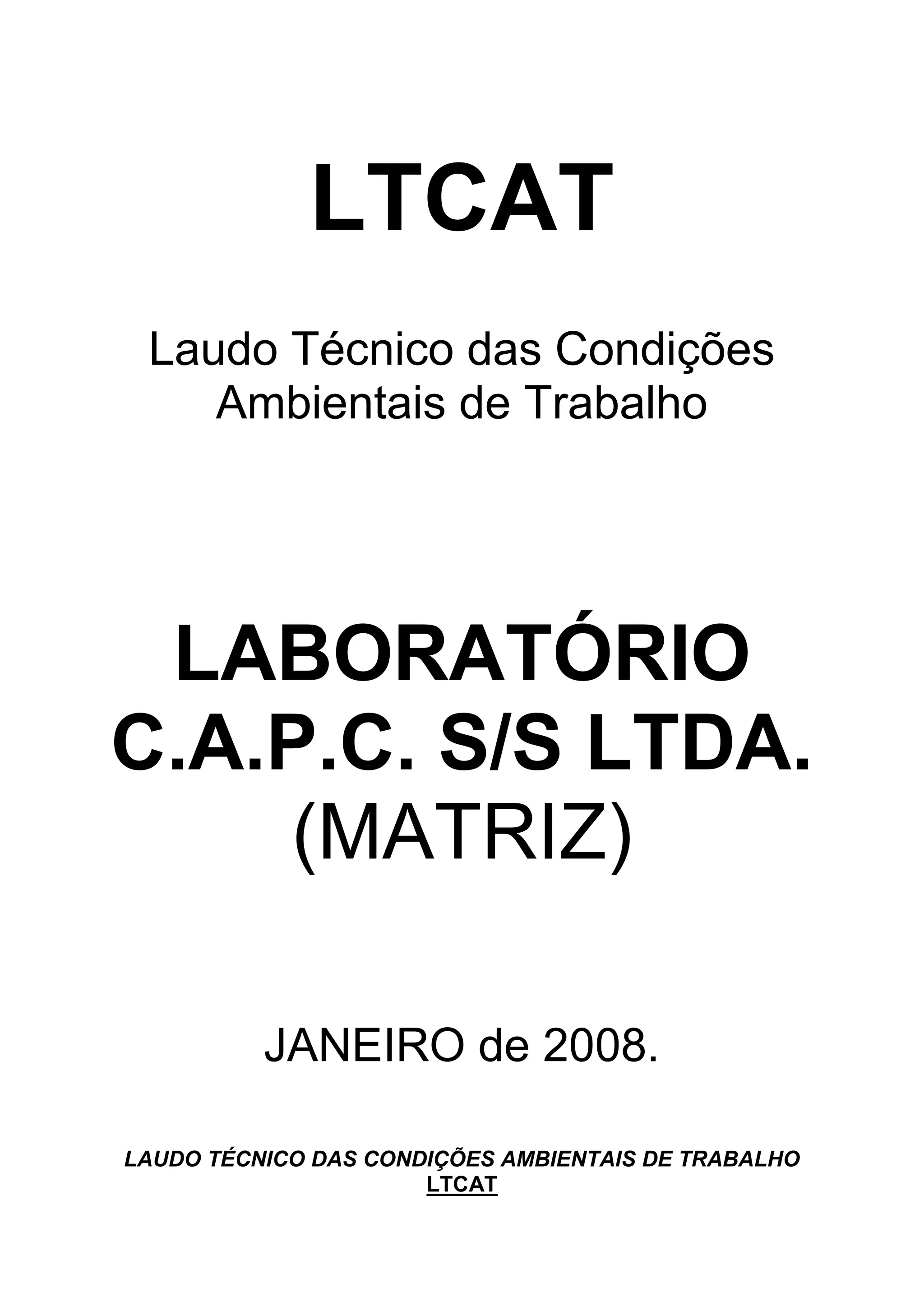 Este documento apresenta três laudos técnicos das condições ambientais de trabalho de diferentes funcionários de um laboratório. O primeiro laudo avalia um Auxiliar de Macroscopia e conclui que a função é insalubre devido à exposição a agentes químicos, biológicos, ergonômicos e de acidentes. O segundo laudo avalia um Auxiliar Administrativo e conclui que a função não é insalubre. O terceiro laudo avalia um Auxiliar de Escritório e também conclui que a função não é insalubre.