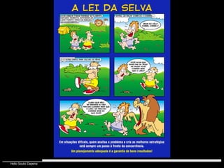 O documento discute estratégia, planejamento estratégico e tomada de decisão. Afirma que estratégia depende de reações imprevisíveis de concorrentes, diferente de planejamento baseado em lógica. Também distingue decisões estratégicas de soluções lógicas e analisa o papel da razão e emoção na tomada de decisão.