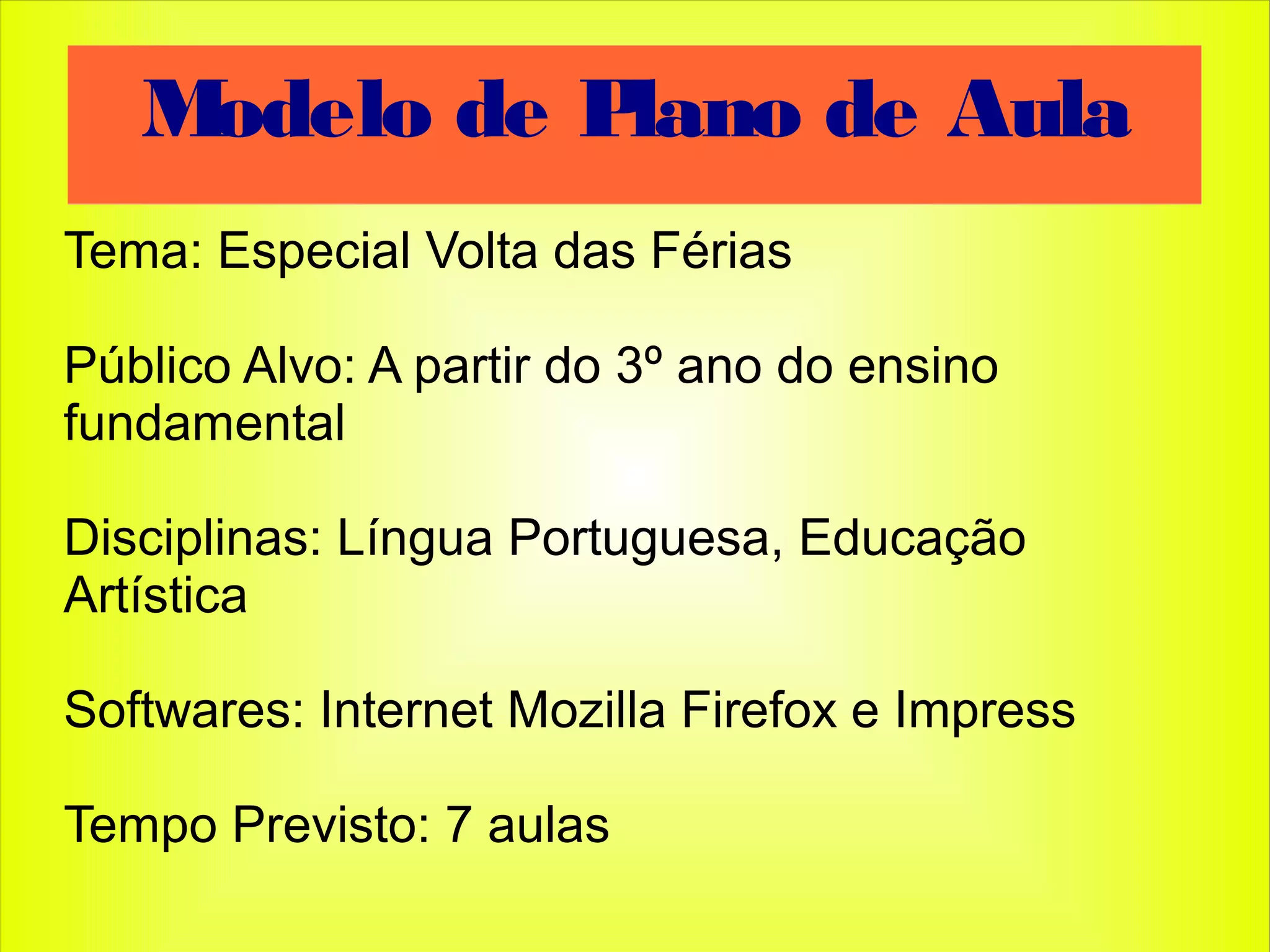 O documento propõe um plano de aula especial sobre as férias para alunos do 3o ano do ensino fundamental, abordando o compartilhamento de experiências, o folclore regional e a cultura brasileira. O plano inclui atividades de pesquisa, mapeamento e apresentação sobre locais visitados nas férias durante 7 aulas.