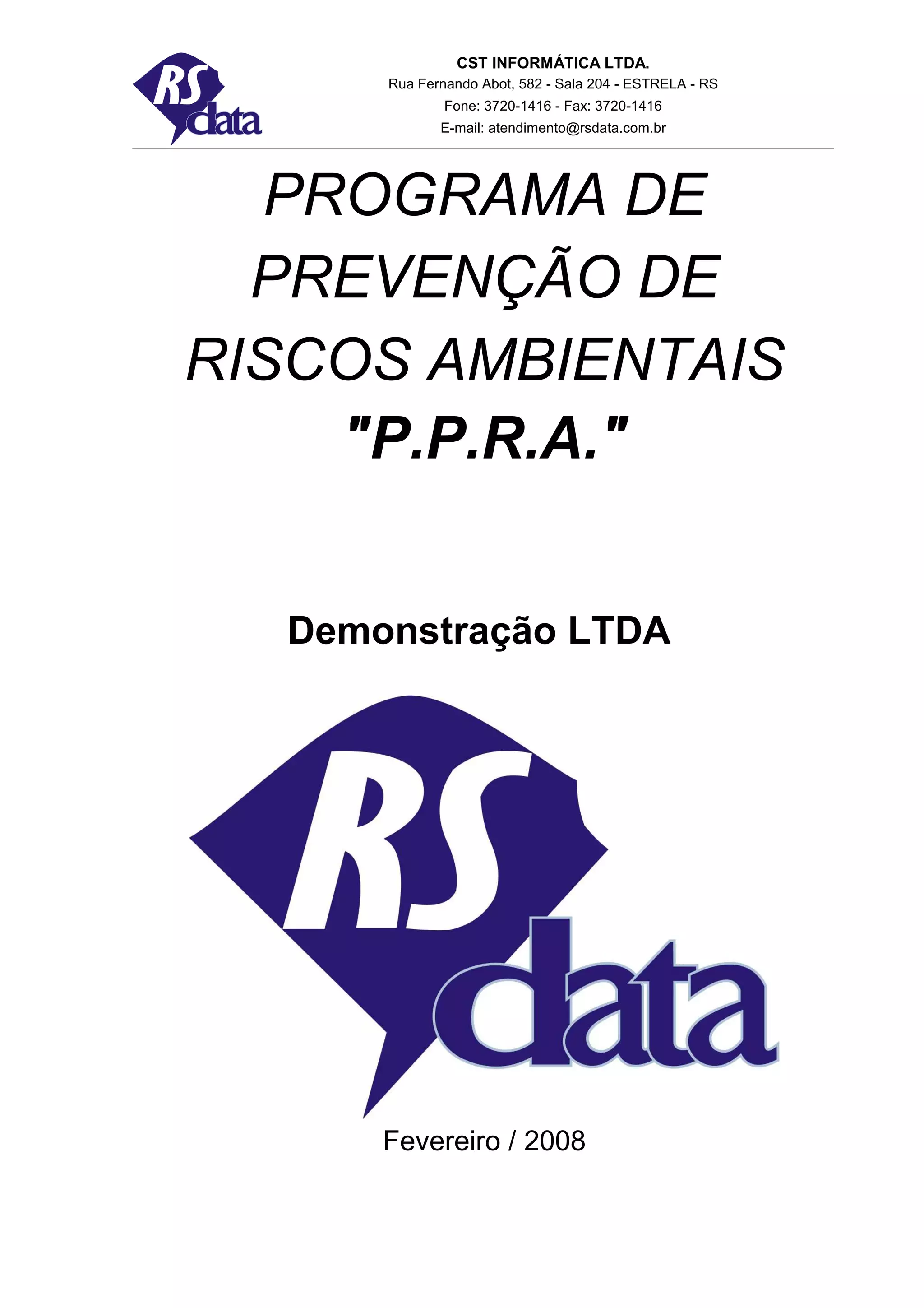 O documento apresenta um Programa de Prevenção de Riscos Ambientais (PPRA) para a empresa Demonstração LTDA, descrevendo sua atividade como abate de aves e apresentando os riscos ambientais inerentes a esta atividade e as normas regulamentadoras aplicáveis.