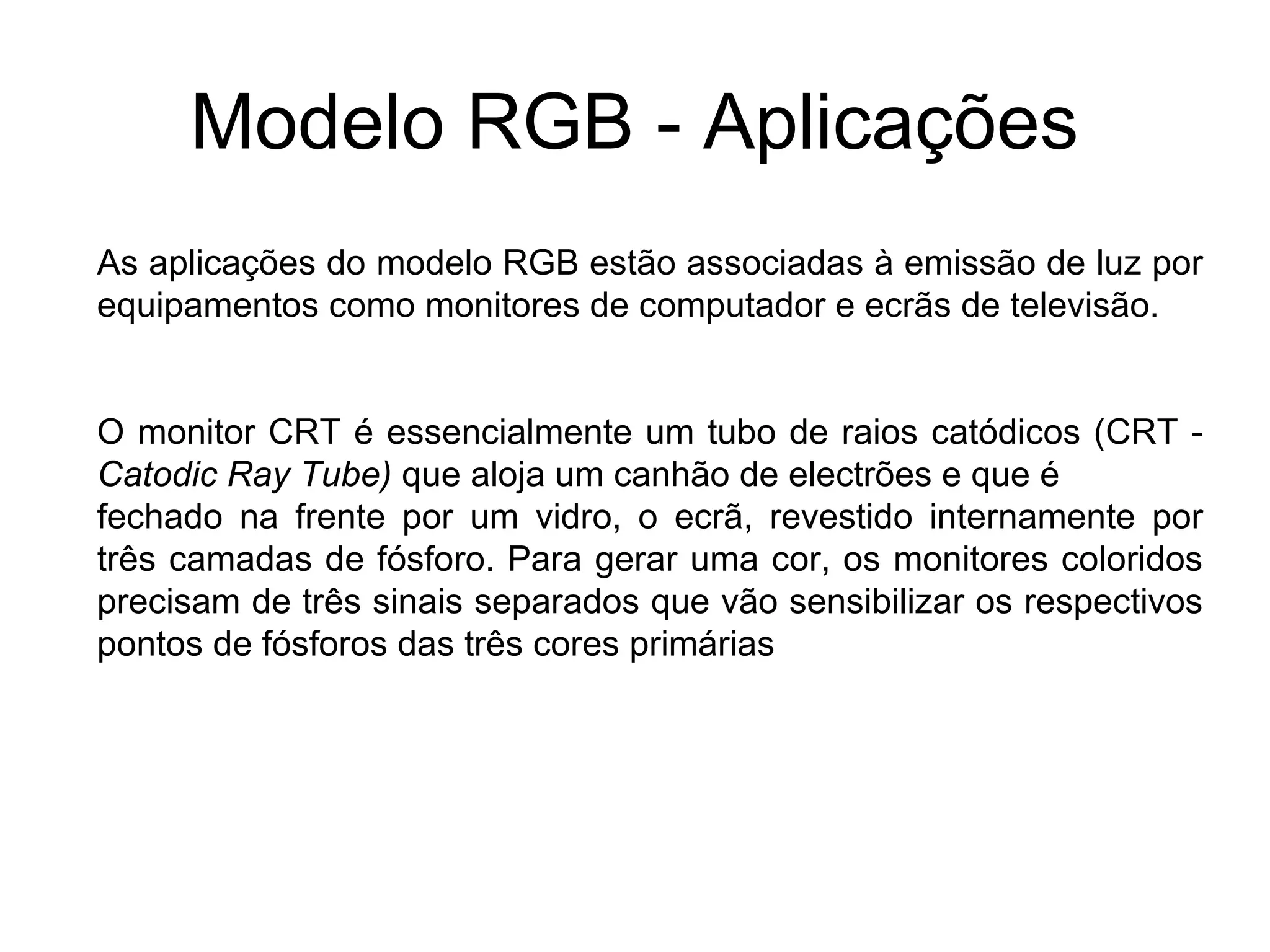 As aplicações do modelo RGB estão associadas à emissão de luz por
