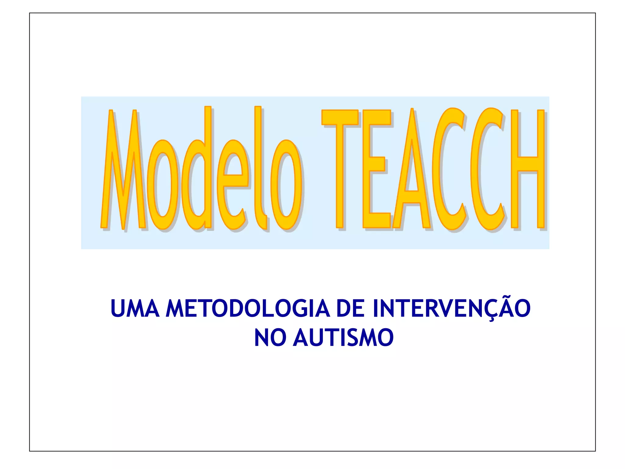 Este documento descreve a metodologia TEACCH (Treatment and Education of Autistic and Communication Handicapped Children) para intervenção no autismo. O modelo TEACCH enfatiza uma avaliação diagnóstica individualizada e intervenção baseada nas capacidades da criança, com foco em fornecer informações visuais, previsibilidade e autonomia para melhorar as competências comunicativas e sociais.