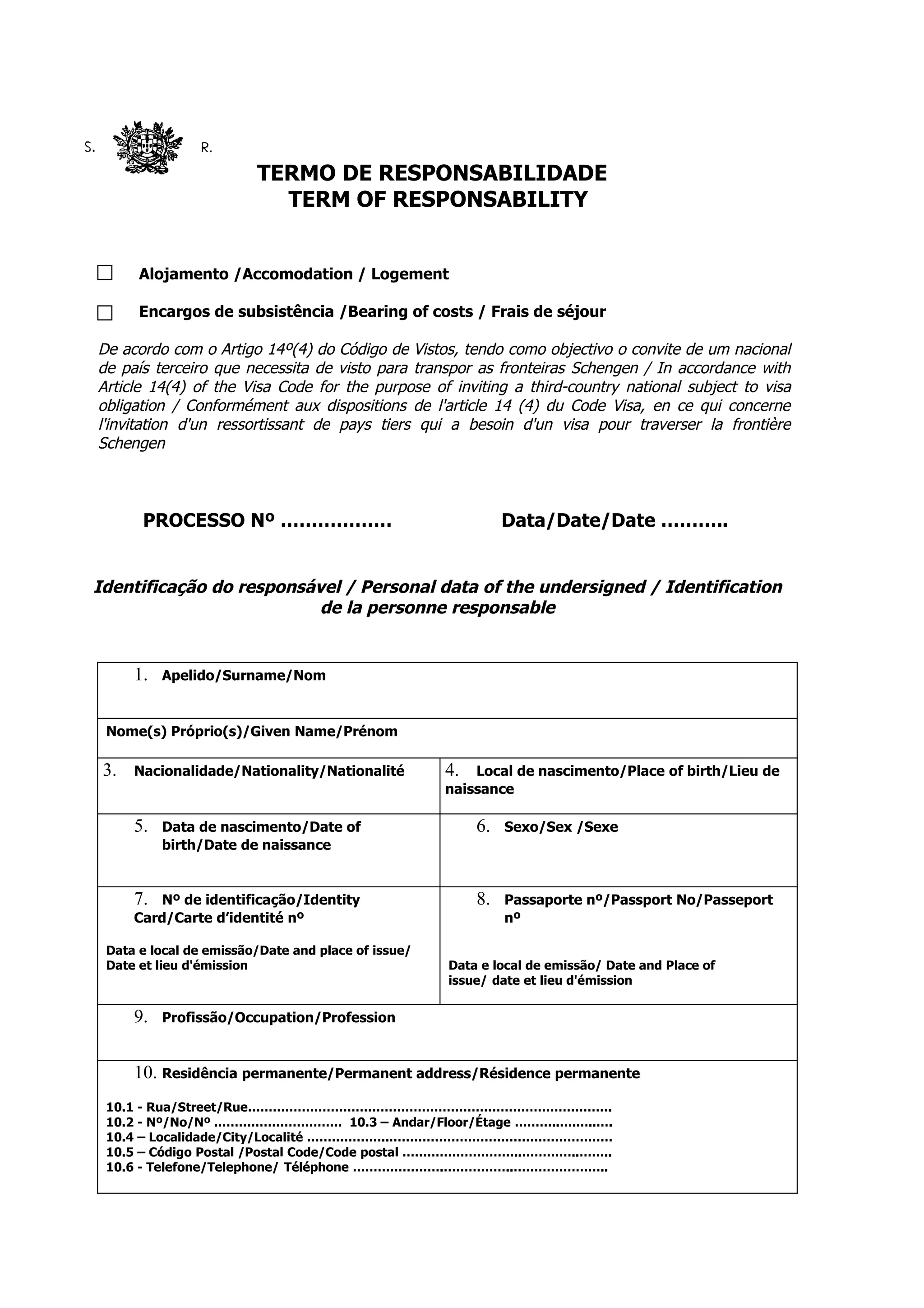 2) O responsável declara poder fornecer alojamento e, opcionalmente, cobrir outros custos do convidado.