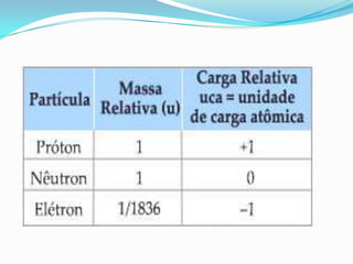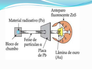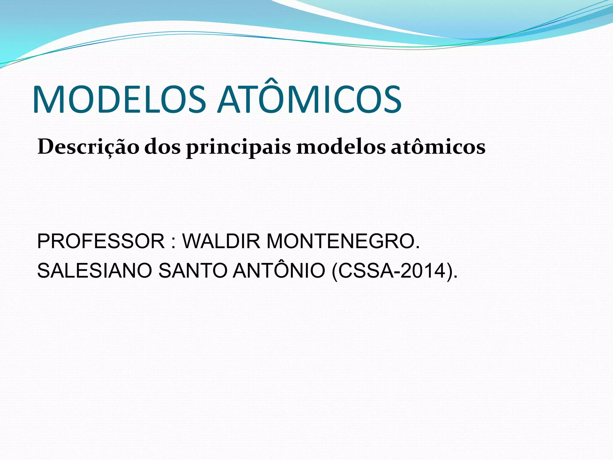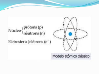 O documento descreve os principais modelos atômicos desde a Antiguidade até o modelo atômico de Rutherford-Bohr, incluindo os modelos de Dalton, Thomson, Rutherford e o modelo atômico clássico. Os modelos evoluíram à medida que novos experimentos forneceram novas evidências sobre a estrutura do átomo.