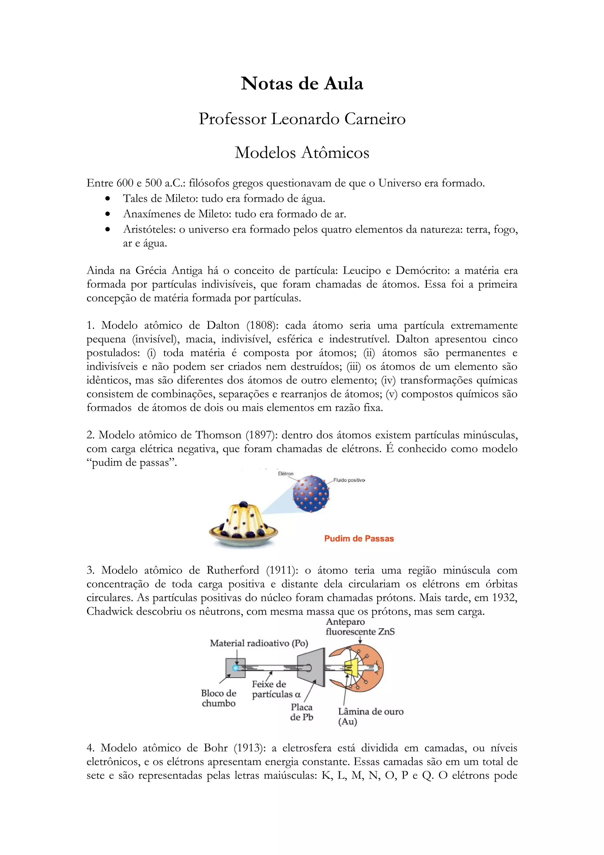 (1) Filósofos gregos questionaram o que formava o Universo, com propostas como água, ar e os quatro elementos da natureza. (2) Leucipo e Demócrito propuseram que a matéria era formada por partículas indivisíveis chamadas átomos. (3) Modelos atômicos posteriores, como os de Dalton, Thomson, Rutherford e Bohr, refinavam a estrutura atômica ao propor elementos como elétrons e núcleo.