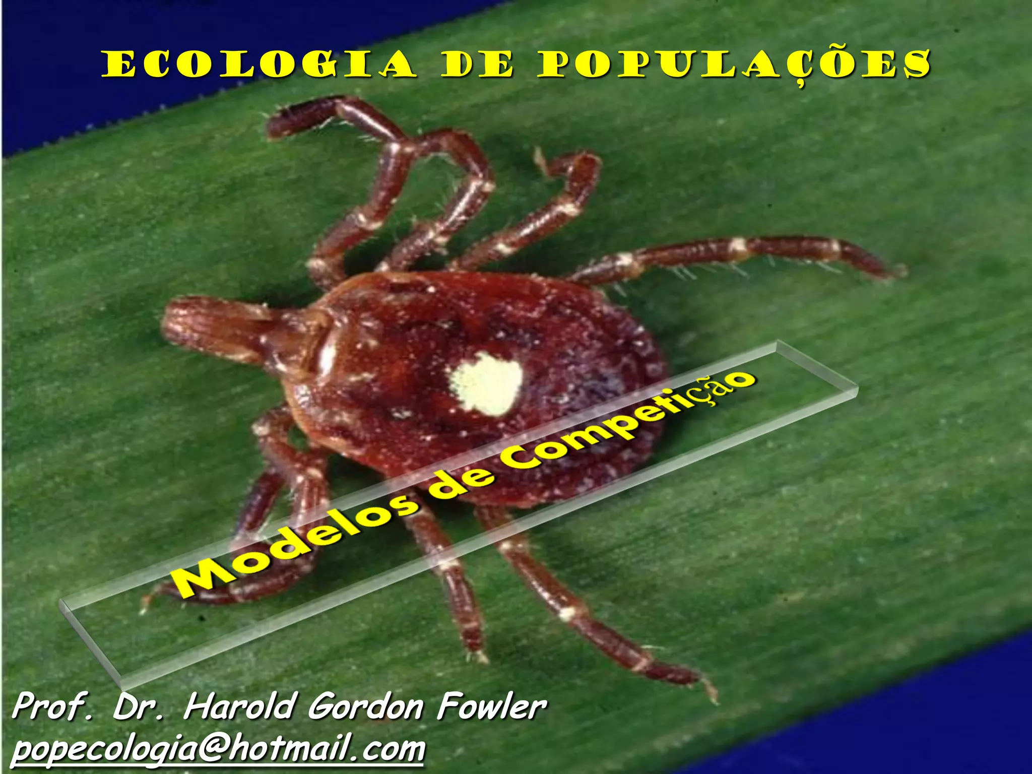 2) É apresentado o modelo de Lotka-Volterra para modelar a competição entre duas espécies através de equações diferenciais que descrevem as taxas de crescimento de cada população.