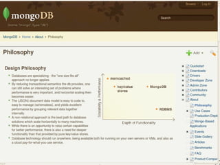 O documento discute a transição de um sistema de registro de ensaios clínicos para modelos de dados mais flexíveis utilizando NoSQL, em particular CouchDB, e as lições aprendidas sobre normalização e versionamento de registros. A equipe utilizou Django para desenvolver uma aplicação chamada django-fossil, que cria versões imutáveis e auditáveis de registros. O autor enfatiza a importância da persistência poliglota ao integrar bancos de dados relacionais e NoSQL na solução de problemas de dados.