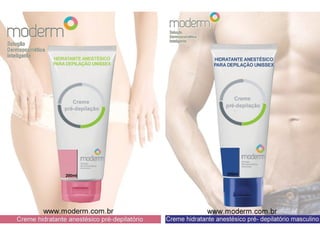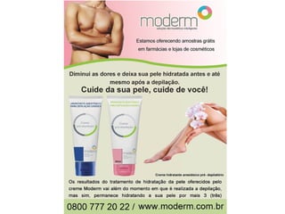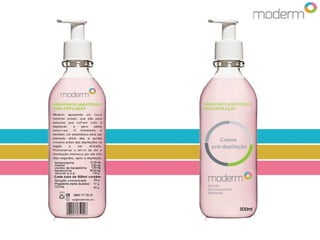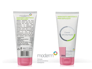 A Moderm é uma empresa de dermocosméticos de médio porte, fundada em 2011, que se destaca pela inovação e eficácia de seus produtos, incluindo um novo creme hidratante anestésico para depilação. Seu público-alvo abrange homens e mulheres de 25 a 35 anos das classes A, B e C, focando na venda em farmácias e lojas virtuais. Apesar da concorrência no mercado crescente de dermocosméticos, a Moderm se diferencia ao não limitar seu público apenas a classes altas e ao trabalhar com diversas estratégias promocionais.