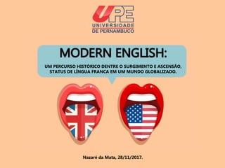 O documento descreve a história do inglês desde seu surgimento até se tornar uma língua global, destacando eventos como a Reforma Protestante, o trabalho de Shakespeare, a publicação do dicionário de Samuel Johnson e a influência do Império Britânico e dos Estados Unidos.