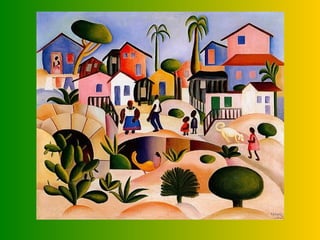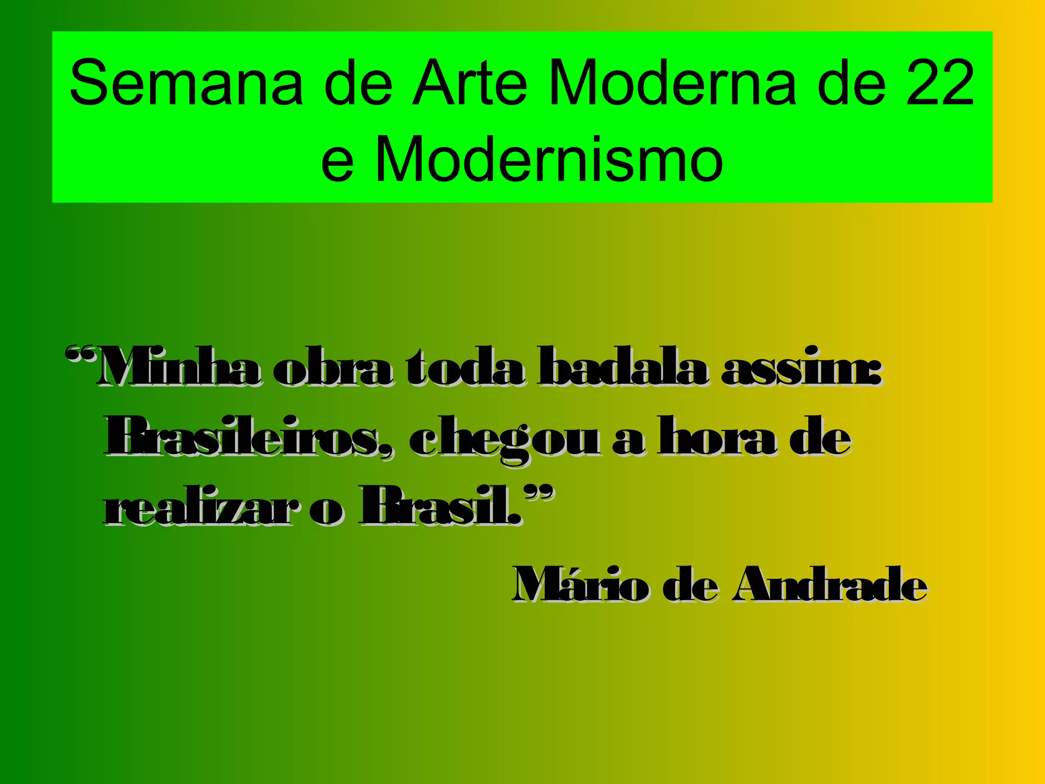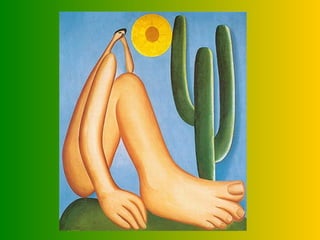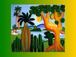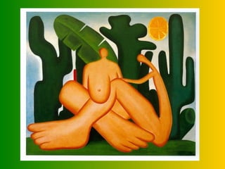 O documento descreve os antecedentes e os eventos da Semana de Arte Moderna de 1922 no Brasil. A Semana marcou o rompimento com a arte acadêmica e a oficialização da arte moderna no país, visando criar uma arte genuinamente brasileira. Artistas como Mário de Andrade, Oswald de Andrade, Anita Malfatti e Tarsila do Amaral participaram ativamente do movimento modernista.