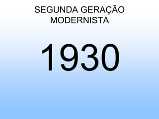 O documento descreve o período da segunda geração modernista no Brasil na década de 1930, marcado por crises políticas e econômicas. Apresenta poemas de Carlos Drummond de Andrade que refletem sobre o cotidiano, a política e a condição humana de forma irônica e crítica. Também destaca a poesia de Cecília Meireles, representante do intimismo e espiritualismo modernista.
