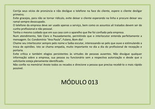 anormalidade no interfone imediatamente e mantê-lo em perfeitas condições. Ao atender o telefone, cumprimente