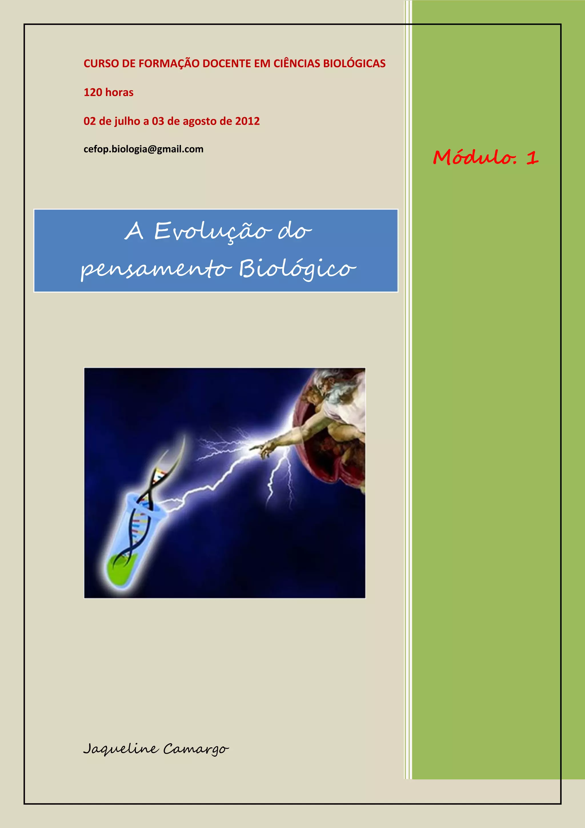 Este documento descreve a evolução do pensamento biológico ao longo da história, desde os primeiros pensamentos primitivos sobre a natureza até os principais contribuidores para o desenvolvimento da biologia, como Aristóteles, Leonardo da Vinci, Darwin e Wallace. O documento também discute como essas figuras históricas ajudaram a substituir visões criacionistas por uma compreensão científica da evolução das espécies.