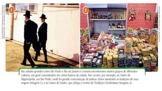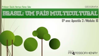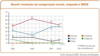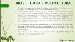 O documento discute a diversidade humana no Brasil, observada nos aspectos físicos e culturais da população. Apesar das diferentes características, os brasileiros compartilham da mesma cultura e estão sob as mesmas leis. O módulo irá explorar as diferentes etnias e culturas que formam o povo brasileiro.