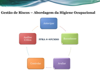 - O PCMSO, elaborado pelo médico do trabalho, usa o relatório do PPRA como entrada para definir quais grupos serão monitorados para cada agente.