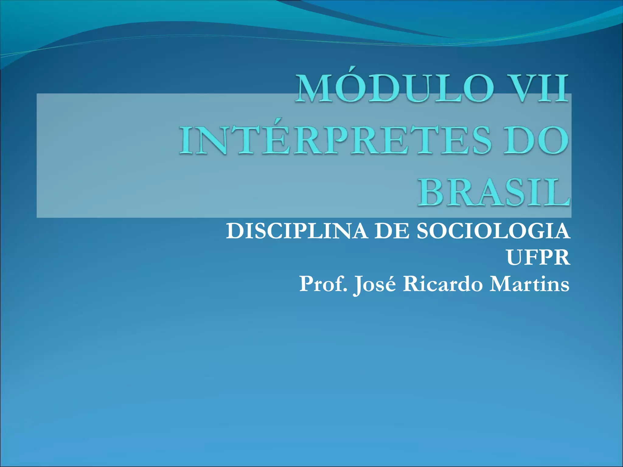 O documento resume os principais intérpretes da formação da sociedade brasileira entre 1920-1975, incluindo Oliveira Vianna, Gilberto Freyre, Sérgio Buarque de Holanda e Caio Prado Jr. Aborda suas perspectivas sobre a identidade nacional, o pensamento autoritário e a influência do patriarcalismo na sociedade brasileira.