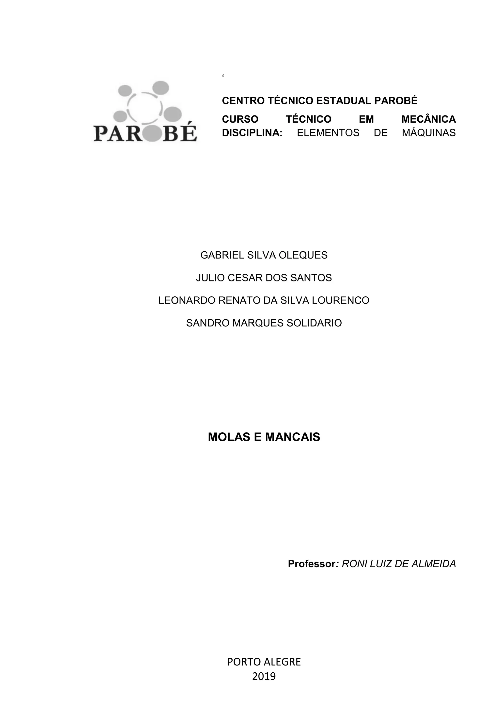 O documento discute molas e mancais. Apresenta os tipos de molas de compressão, tração e torção, e como dimensioná-las. Também descreve os principais tipos de mancais, incluindo de escorregamento, rolamento, hidrodinâmicos, hidrostáticos e aerostáticos.