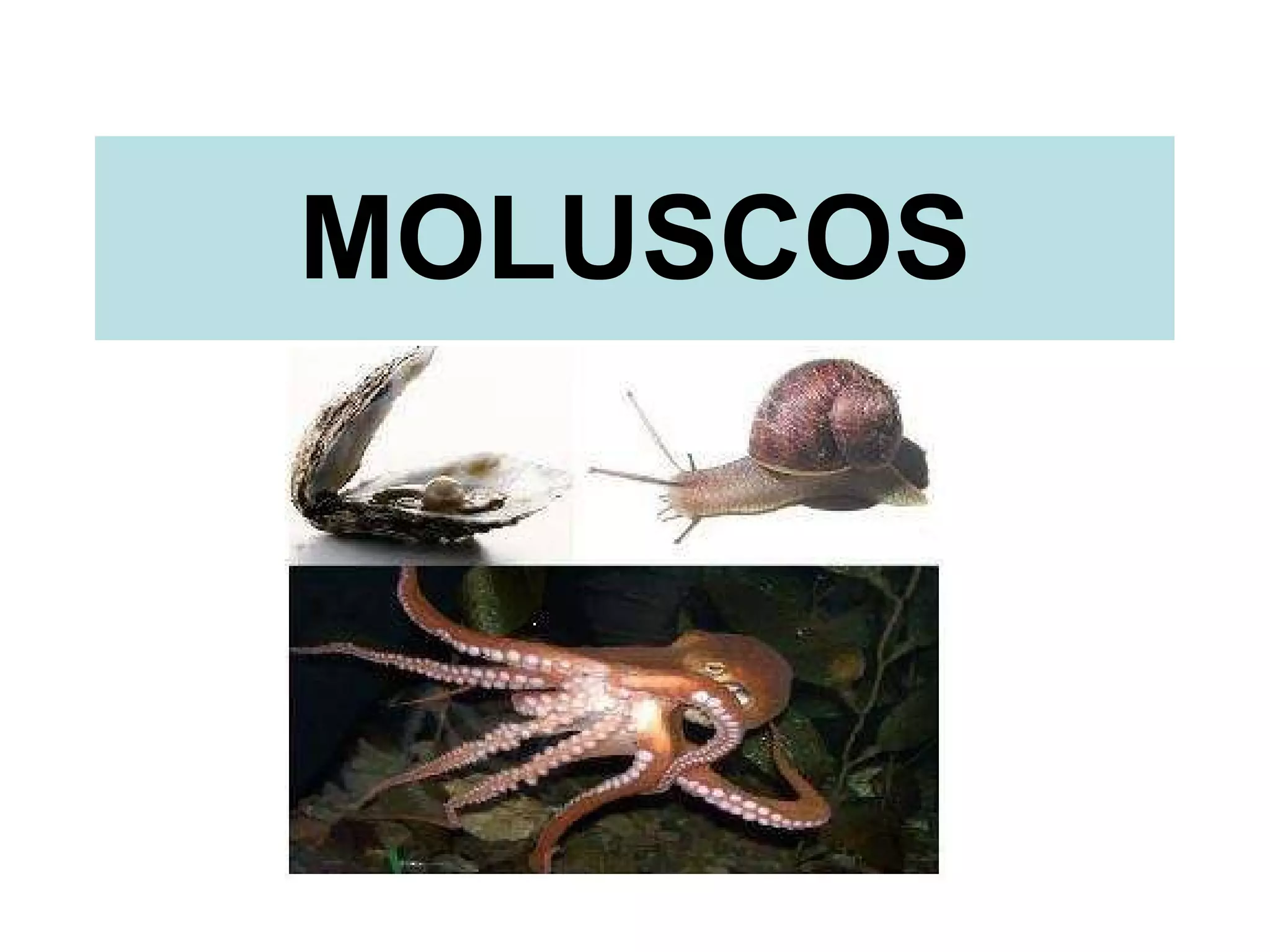 Moluscos são um dos maiores filos do reino animal, incluindo representantes como lulas, polvos, mariscos e ostras. Seu corpo geralmente apresenta três regiões básicas (cabeça, pé e massa visceral) e muitos desenvolveram conchas calcárias. Eles possuem diversas adaptações como rádula, sistema circulatório e reprodutivo que variam entre as classes.