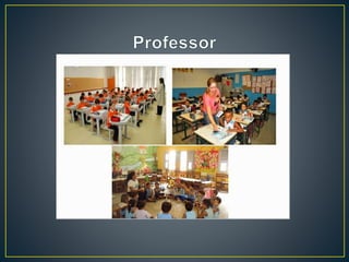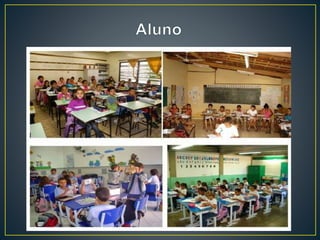 O documento discute as mensagens transmitidas por imagens sobre o papel do professor e do aluno na sala de aula. Apesar de imagens frequentes do estilo tradicional de ensino, percebe-se que a relação entre os dois está mudando para uma maior participação dos alunos. A proporção de imagens que mostram professores transmitindo informações é alta, mas há interação crescente. Já a proporção de imagens retratando alunos passivos é muito forte, o que precisa mudar para que os alunos se vejam como agentes ativos no