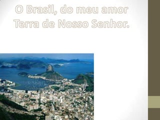 Aquarela do Brasil é uma música que descreve as belezas naturais e culturais do Brasil. Foi composta por Ary Barroso em 1939 e se tornou um hino não oficial do país, representando sua diversidade através de referências a danças, comidas e locais famosos.
