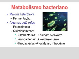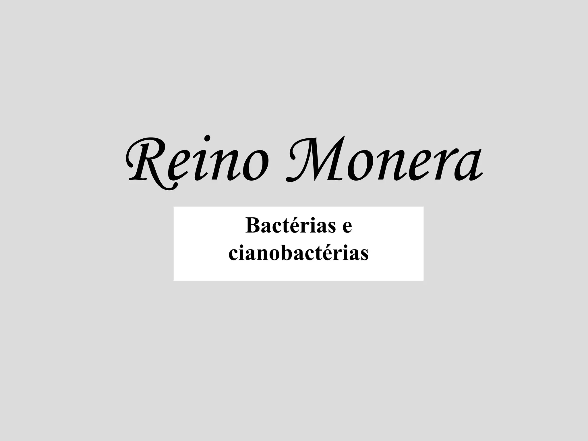 Este documento descreve as características das bactérias e cianobactérias do Reino Monera. Estas células procariontes unicelulares contêm DNA, ribossomos e membrana plasmática. Reproduzem-se por bipartição e podem transferir material genético através de conjugação, transformação e transdução. Algumas espécies formam esporos para sobreviver em condições adversas.