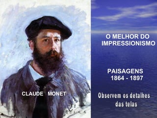 Este documento apresenta uma série de mensagens reflexivas sobre lições de vida aprendidas através de obras do pintor impressionista Claude Monet, acompanhadas de suas paisagens pintadas entre 1864-1897. As frases curtas destacam aprendizados sobre a importância de ouvir os mais velhos, aproveitar o tempo, a paz de ter um filho dormindo nos braços, e outros ensinamentos sobre amizade, apreciação e amor.