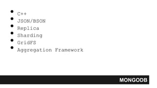 O documento resume os principais conceitos e comandos do MongoDB, incluindo como selecionar e visualizar bancos de dados e coleções, inserir, consultar, atualizar e remover documentos, criar índices, realizar relacionamentos entre coleções e utilizar recursos como sharding, replica e aggregation framework.