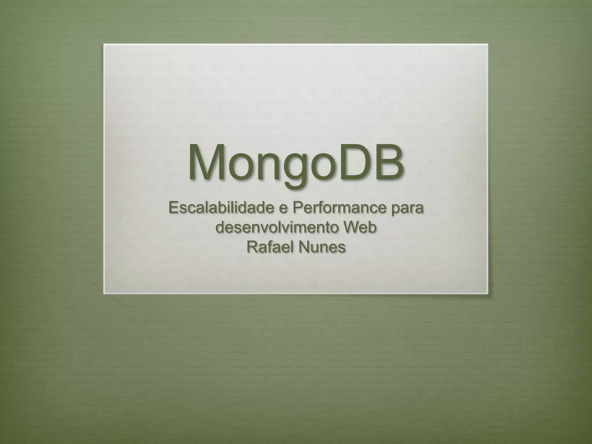 O documento discute como o MongoDB fornece escalabilidade e desempenho para aplicações web. Ele descreve MongoDB como um banco de dados orientado a documentos que armazena objetos JSON/BSON de forma dinâmica e fornece alta performance em leituras e escritas através de replicação e sharding automático. O documento também discute como o MongoDB se compara ao modelo relacional tradicional e fornece exemplos de empresas que usam MongoDB.