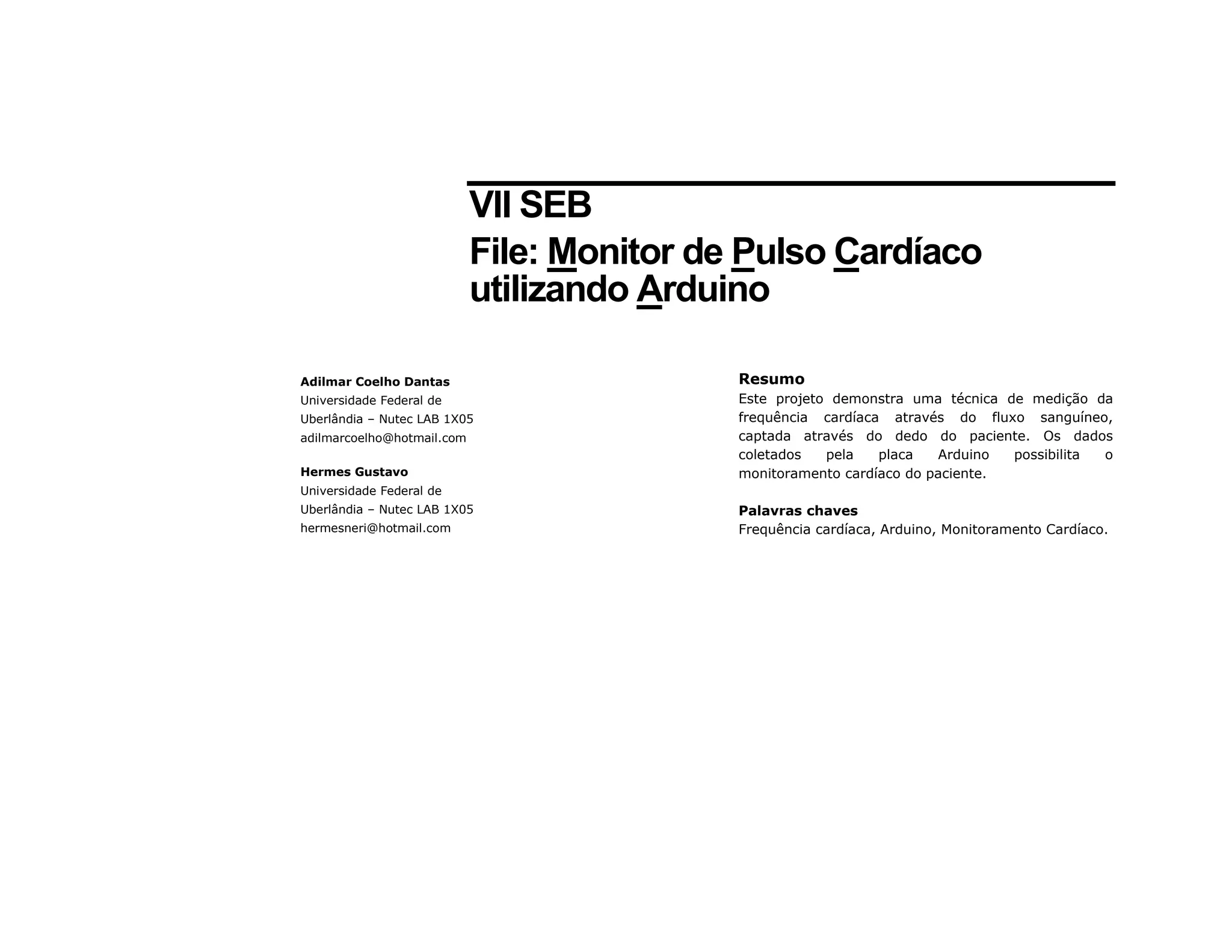 Este projeto utiliza o Arduino para desenvolver um monitor de frequência cardíaca acessível, que mede a pulsação sanguínea através do dedo do paciente, permitindo a detecção de anormalidades em tempo real. Os dados coletados são processados e visualizados graficamente, com uma futura perspectiva de aplicação em dispositivos móveis para alertar pacientes e médicos sobre anormalidades. Os resultados iniciais mostraram a viabilidade do uso de materiais de baixo custo para criar dispositivos relevantes para a saúde.