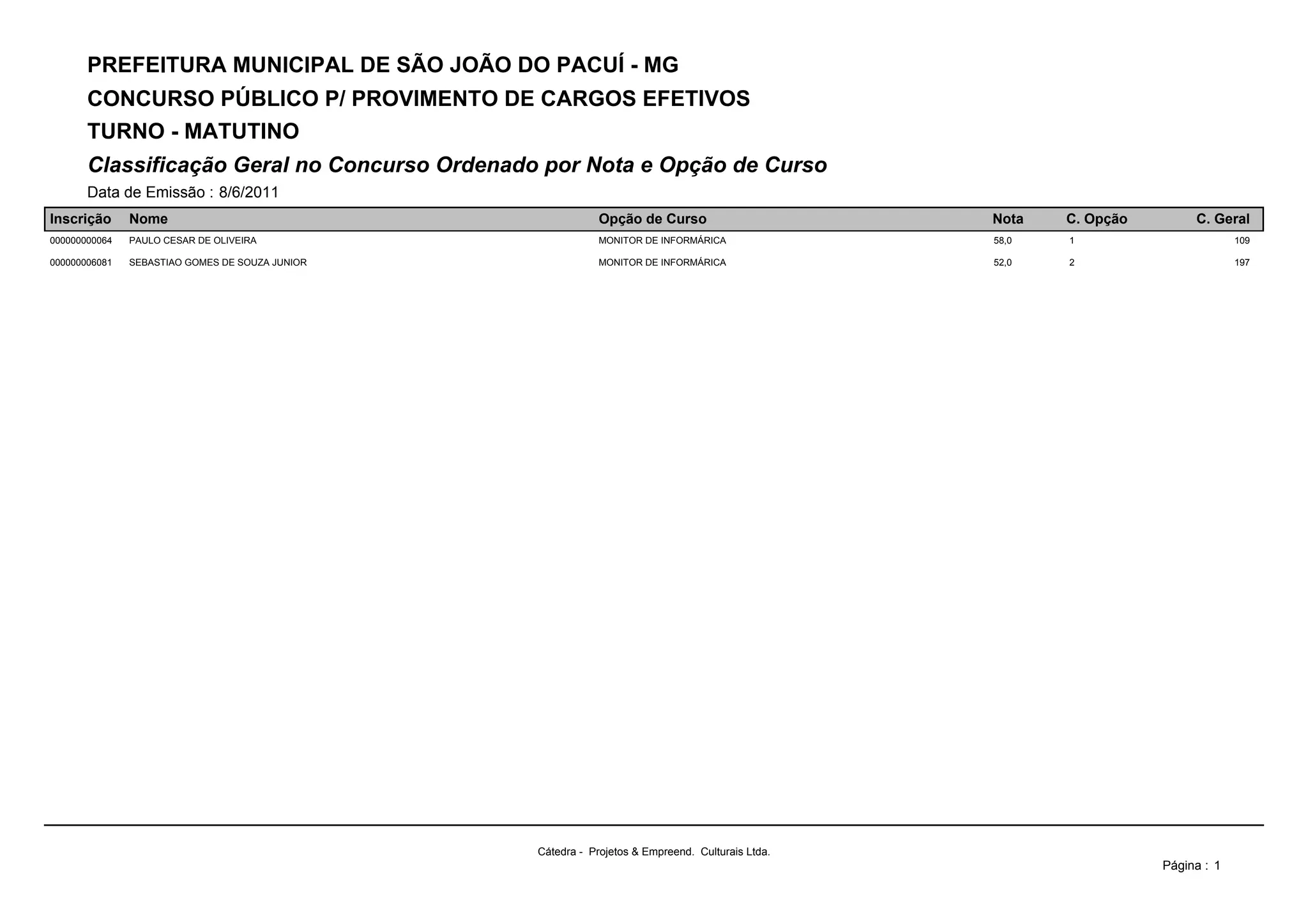 000000000064 PAULO CESAR DE OLIVEIRA MONITOR DE INFORMÁRICA 58,0 1 109