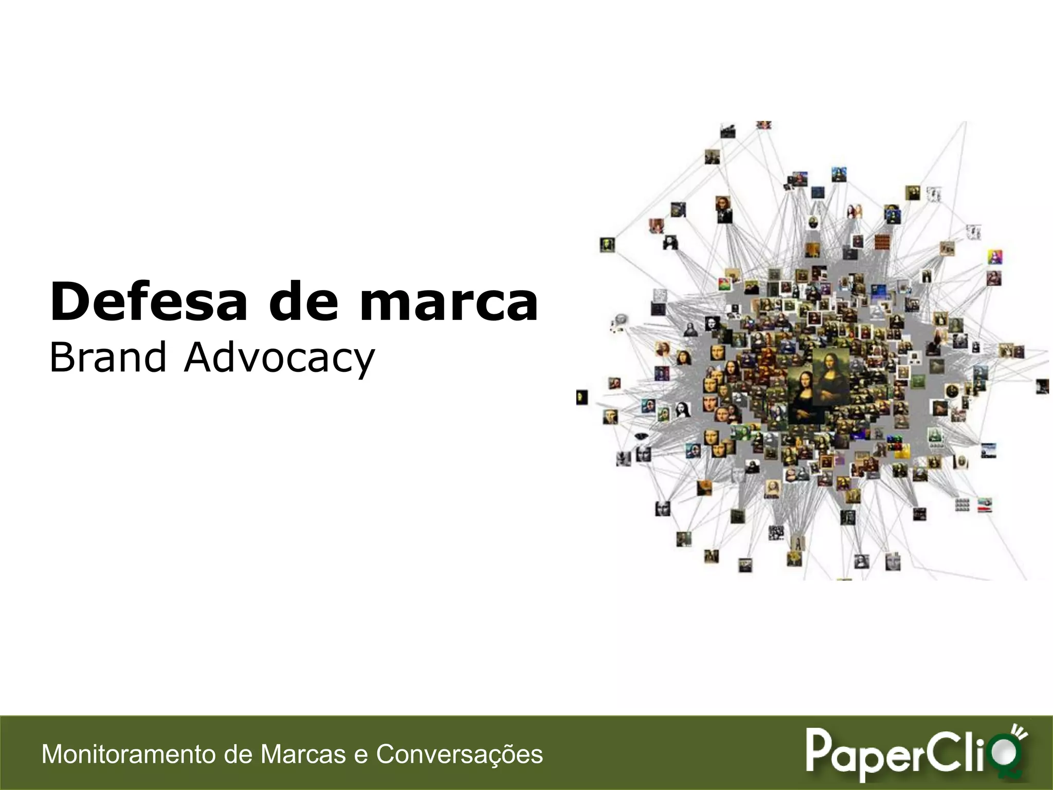 O documento apresenta a importância da defesa de marca (brand advocacy), destacando como o monitoramento de marcas e conversas é essencial para mensurar seu impacto nos negócios. O avanço tecnológico permitiu novas metodologias de mensuração, como o Net Promoter Score e o Brand Advocacy Quotient, que ajudam a entender a relação entre a defesa da marca e as vendas. O texto também discute desafios na mensuração do marketing boca-a-boca e recomenda abordagens para coletar dados relevantes.