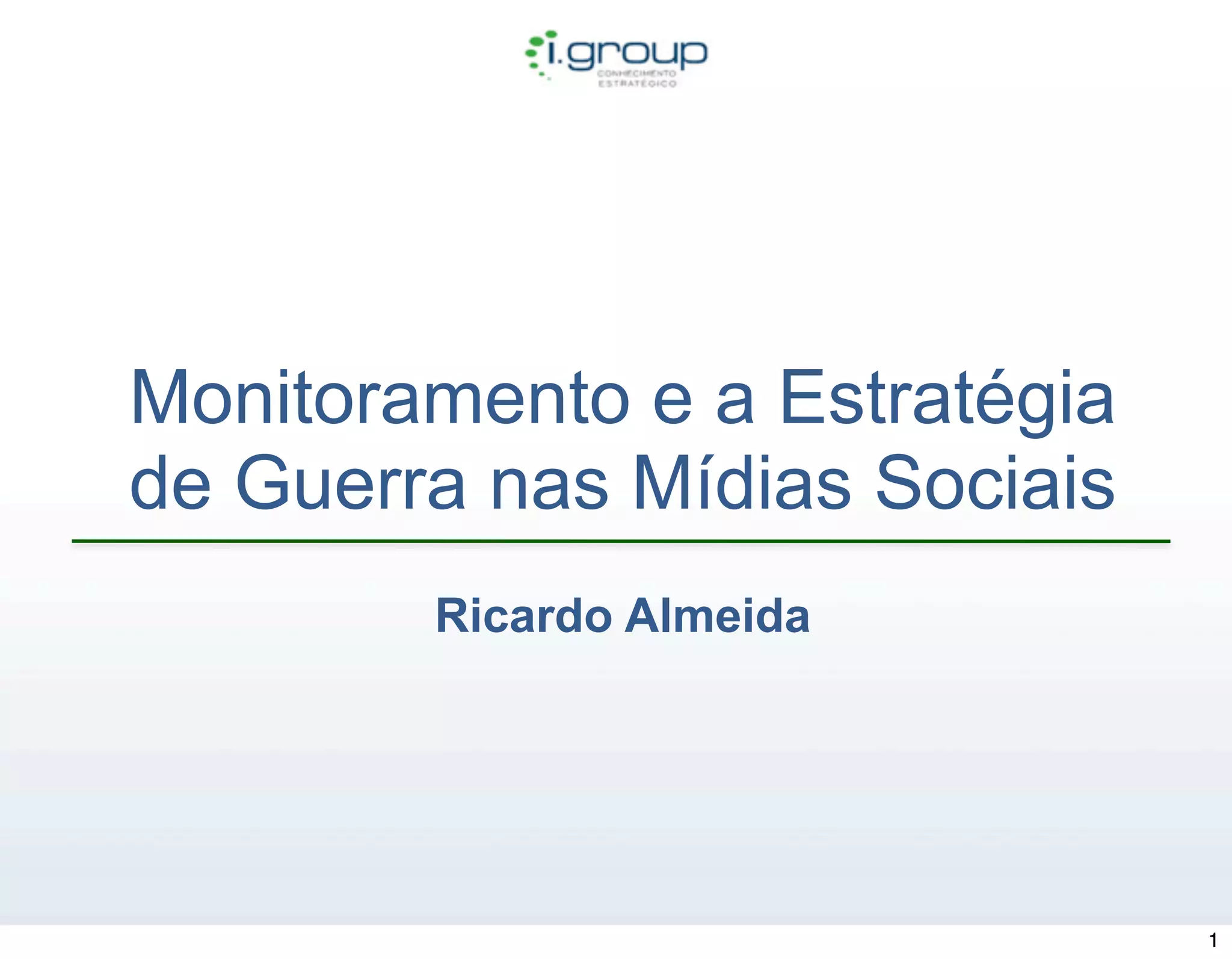O documento discute a importância do monitoramento nas mídias sociais e como ele pode ser usado para entender a posição de uma marca em relação à concorrência. Apresenta indicadores como fragmentação de mercado, índice de saudabilidade e evolução de buzz, além de estratégias e erros comuns no gerenciamento de marcas. Enfatiza que a neutralidade não existe e que todos os tipos de menções afetam a visibilidade e a percepção da marca.