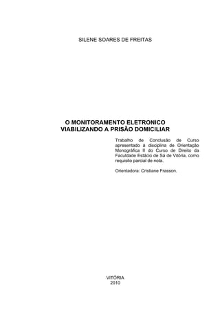Este trabalho de conclusão de curso analisa o uso do monitoramento eletrônico como alternativa à prisão domiciliar no Brasil, investigando sua eficácia e constitucionalidade. Apresenta um panorama da crise do sistema prisional brasileiro, destacando a necessidade urgente de soluções para a superlotação e condições inadequadas nas prisões. A legislação de monitoramento eletrônico, sancionada em 2010, é discutida em relação ao impacto que pode ter sobre a execução penal e direitos dos presos.