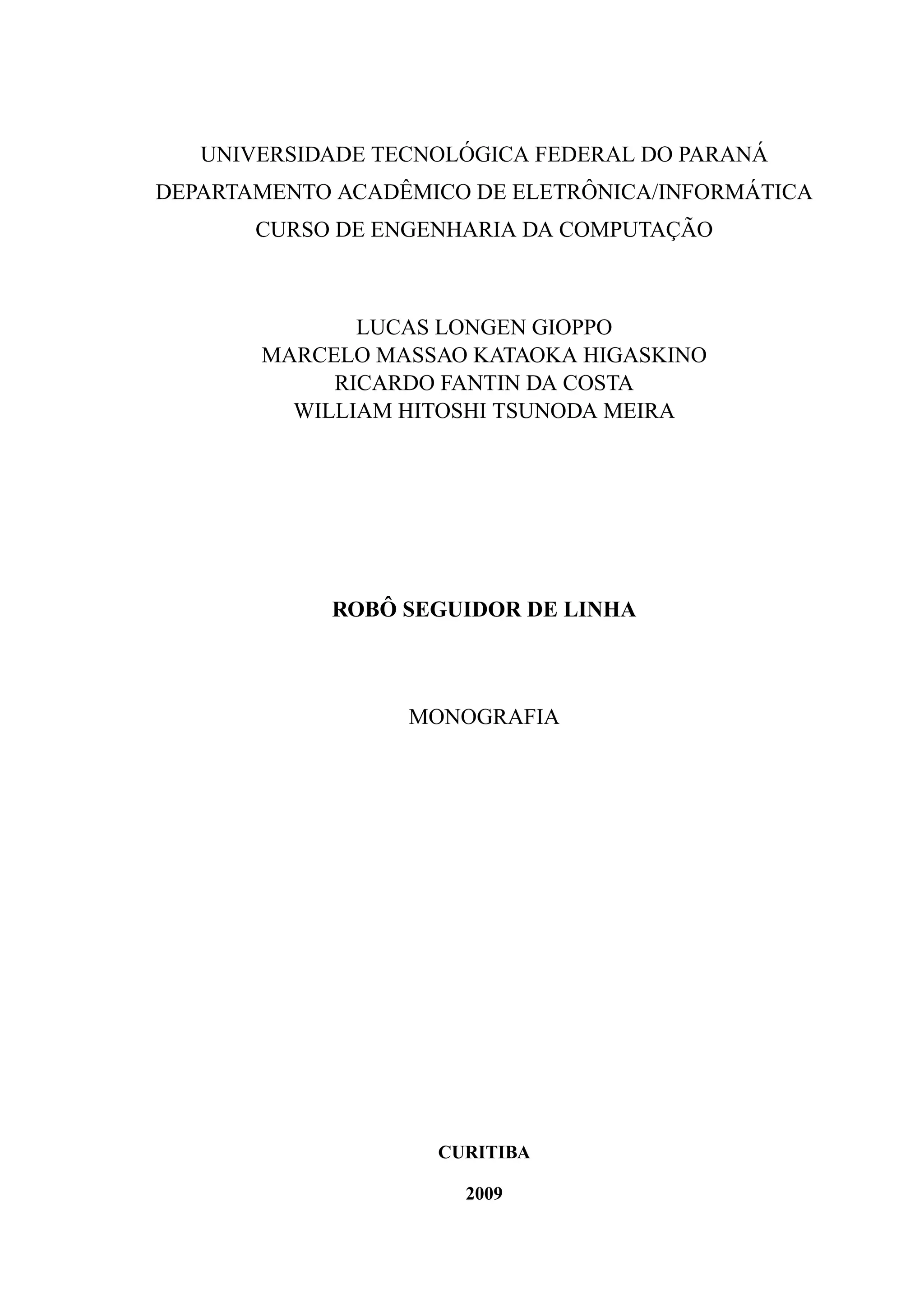 1. O documento apresenta o projeto de construção de um robô seguidor de linha.