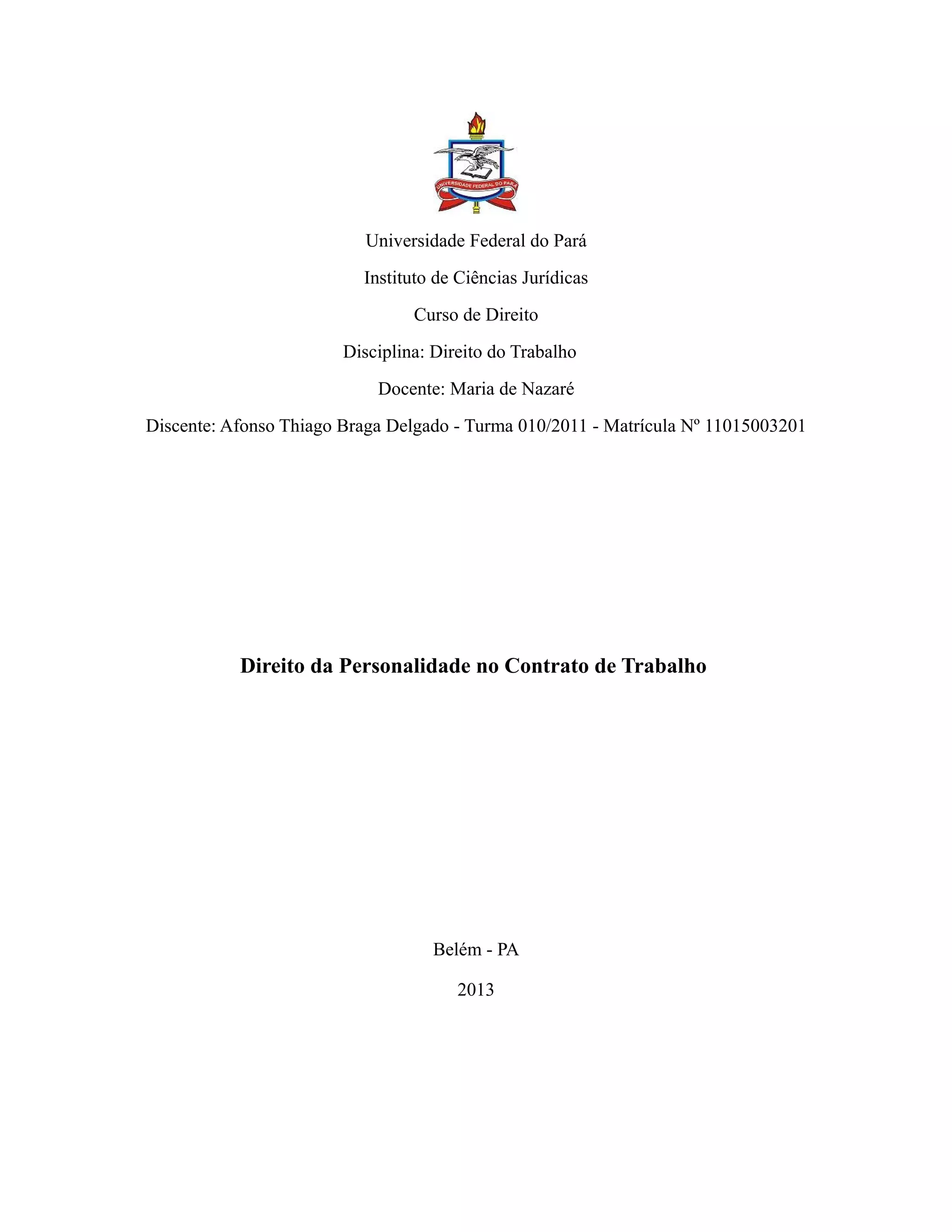 Este documento apresenta uma monografia sobre o direito da personalidade no contrato de trabalho. No primeiro capítulo, define os conceitos de assédio moral, sexual e psicológico (mobbing), descrevendo suas formas e impactos. No segundo capítulo, discute as indenizações por danos morais e materiais decorrentes destas práticas. No terceiro capítulo, apresenta as conclusões do trabalho.