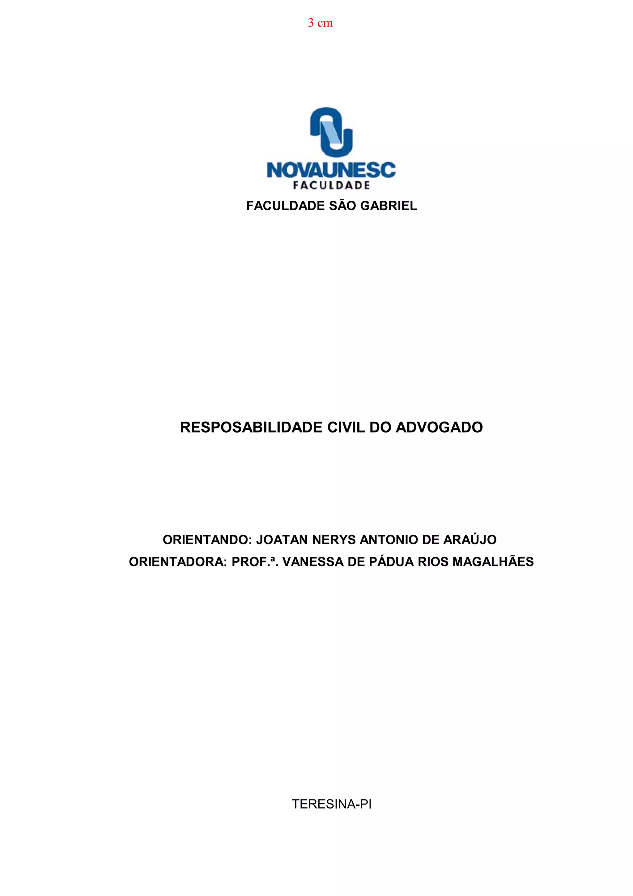 1. O documento discute a responsabilidade civil do advogado. Aborda a evolução histórica da responsabilidade civil, as definições de responsabilidade civil, moral e jurídica, e as leis que regem a responsabilização do advogado por danos causados aos clientes.