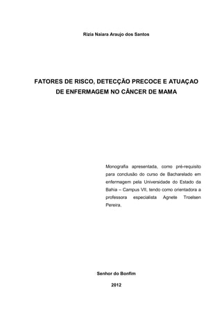1. O documento é uma monografia sobre fatores de risco, detecção precoce e atuação de enfermagem no câncer de mama.