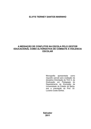 1. O documento discute a mediação de conflitos na escola pelo gestor educacional como alternativa para combater a violência escolar.
