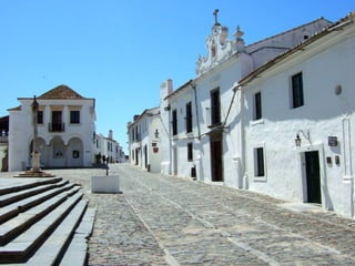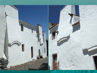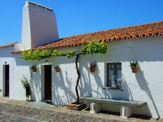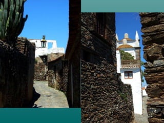 O documento descreve uma pequena aldeia com nove casas, duas ruas e um poço central. Vários poetas portugueses refletem sobre a paisagem rural do Alentejo, descrevendo as casas, a luz, a paz e o mistério das vastas planícies da região.