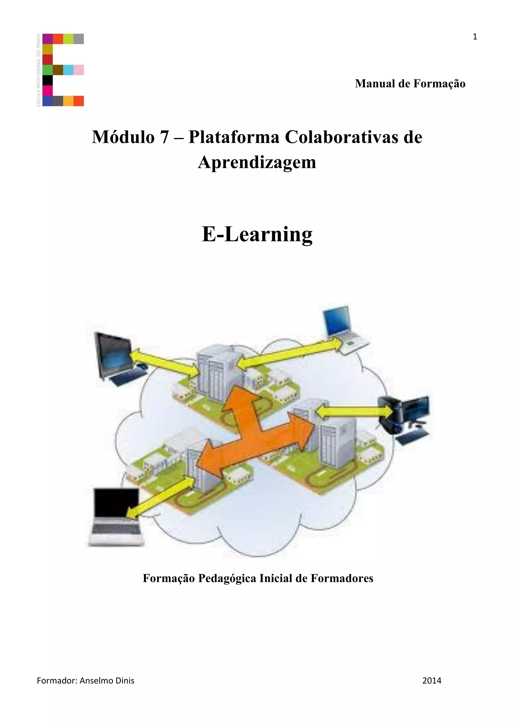 O documento discute o conceito de e-learning e suas vantagens e desvantagens. Ele explica que e-learning refere-se à aprendizagem mediada por tecnologia, permitindo que os alunos acessem conteúdo on-line. Embora alguns critiquem a falta de contato humano, defensores argumentam que ferramentas virtuais podem facilitar a troca de ideias. O documento também lista exemplos de plataformas e-learning populares em Portugal.