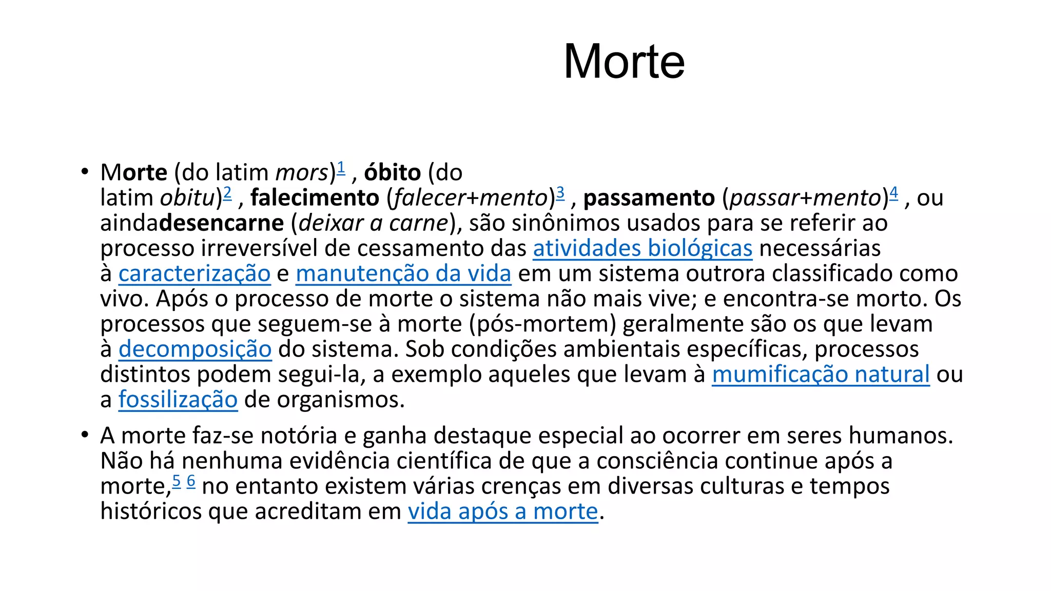 O documento discute o conceito de morte de três perspectivas: