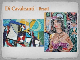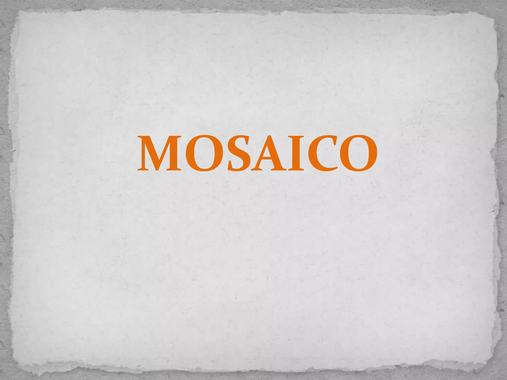 A arte do mosaico tem origens antigas na Grécia e Roma, e foi amplamente utilizada no Império Bizantino entre 395-1453 d.C principalmente em igrejas e templos. A técnica envolve colocar pequenos fragmentos como pedras ou vidro sobre uma superfície. O mosaico continua sendo usado por artistas até hoje em diversos lugares e estilos.