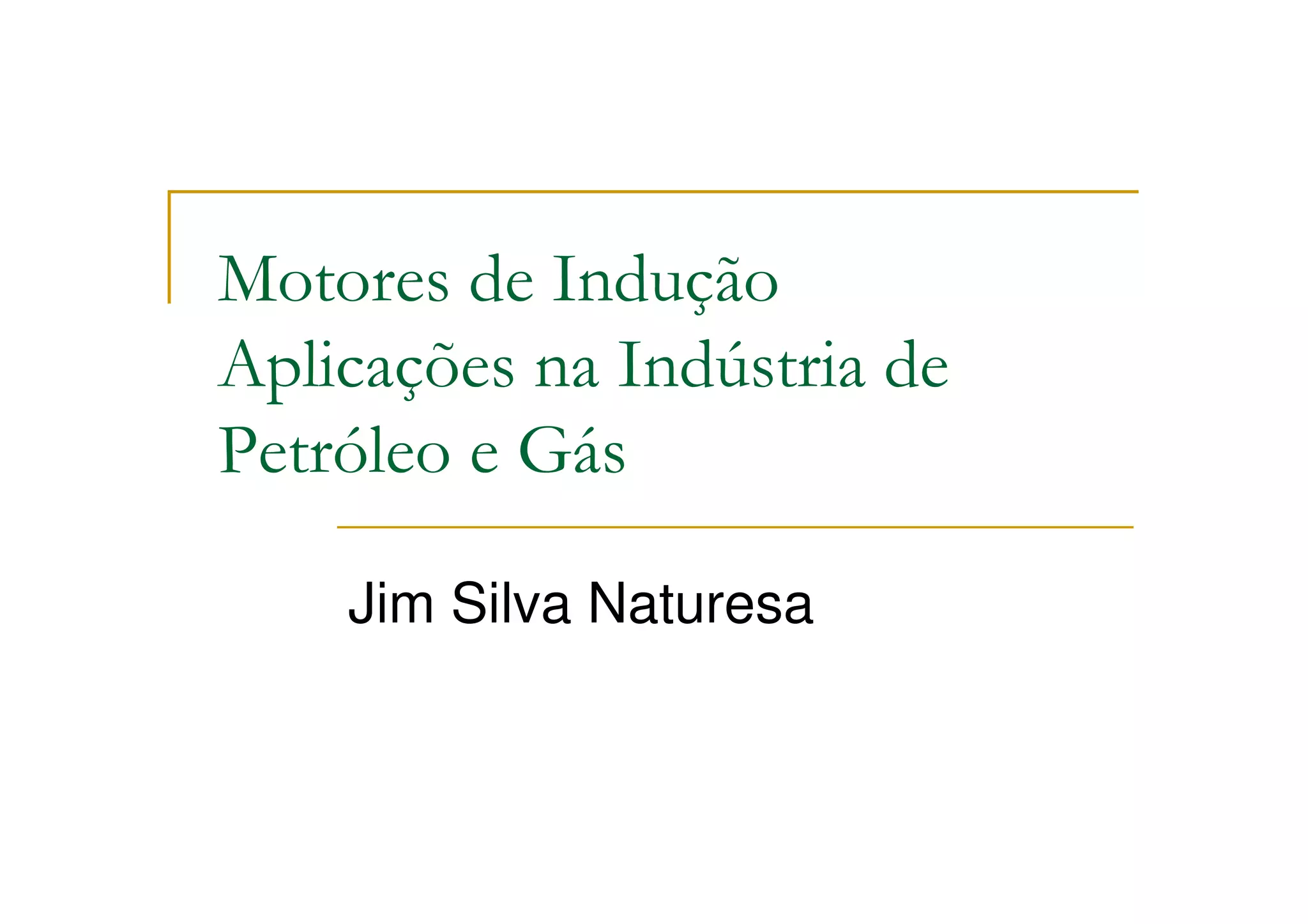 O documento discute aplicações de motores de indução na indústria de petróleo e gás, incluindo bombeamento centrífugo submerso, bombeamento mecânico por hastes e gas lift. Descreve o primeiro poço no Brasil a usar bombeamento centrífugo submerso em águas profundas e os desafios associados a esta técnica.