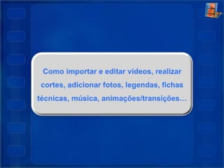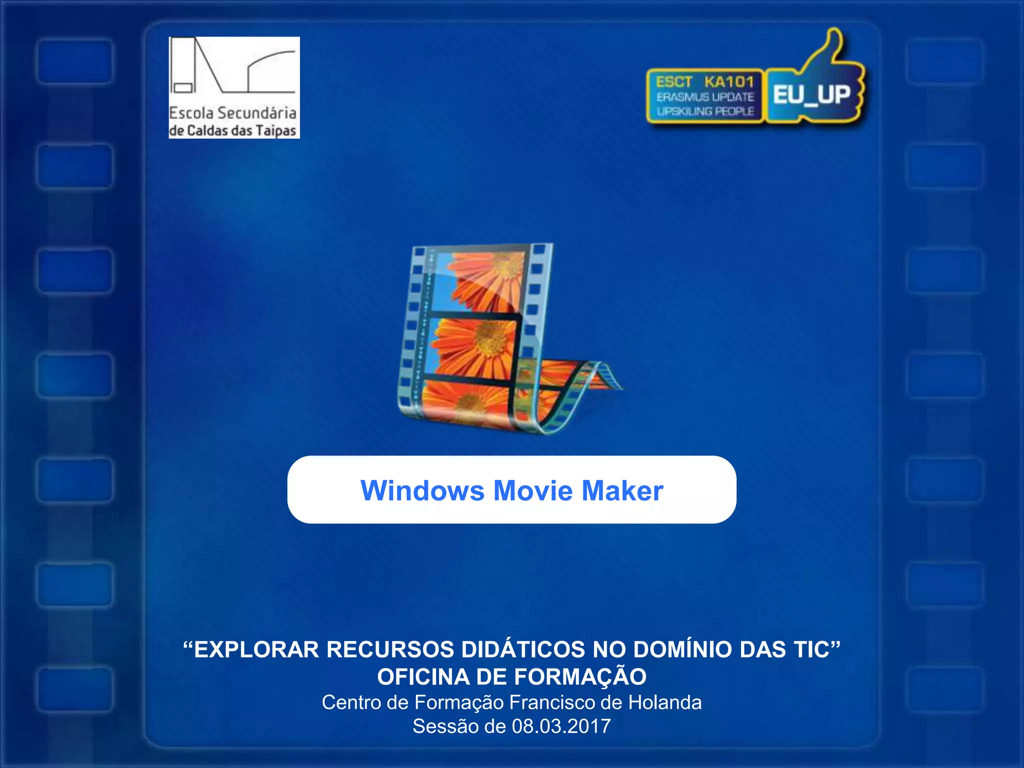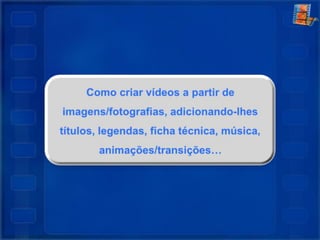 O documento descreve uma oficina de formação sobre como utilizar o Windows Movie Maker para criar vídeos a partir de imagens, fotografias e vídeos, permitindo adicionar títulos, legendas, ficha técnica e música. É explicado como aceder, adicionar conteúdos e formatar, guardar projetos e sair do programa.